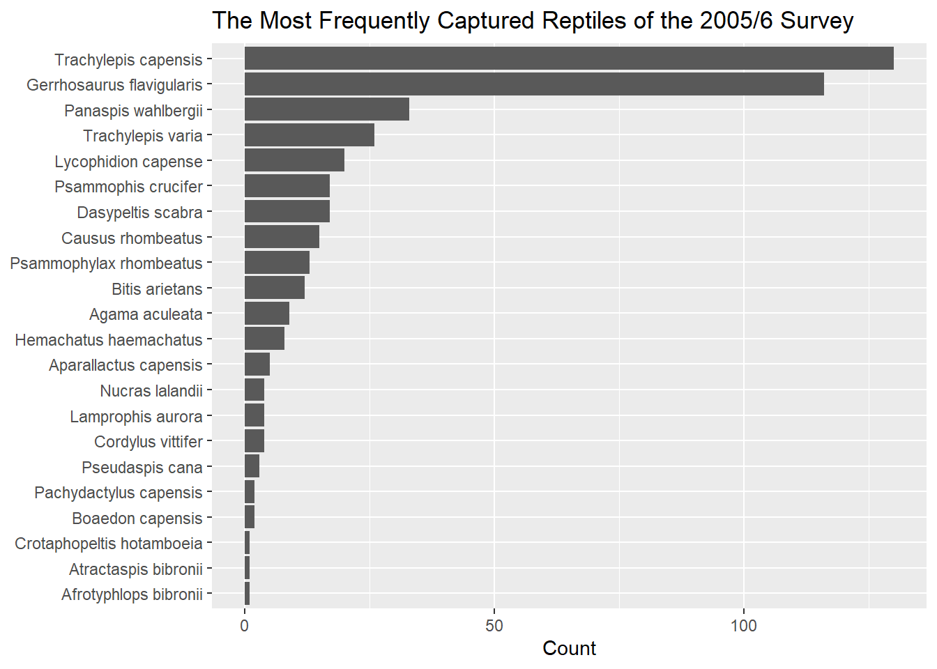 title = "The Most Frequently Captured Reptiles of the 2005/6 Survey",