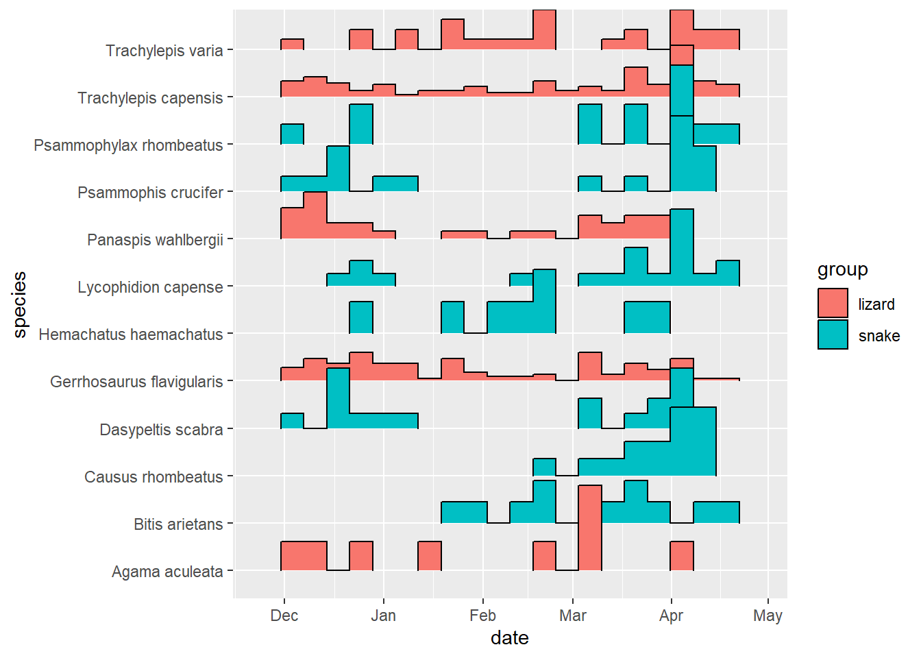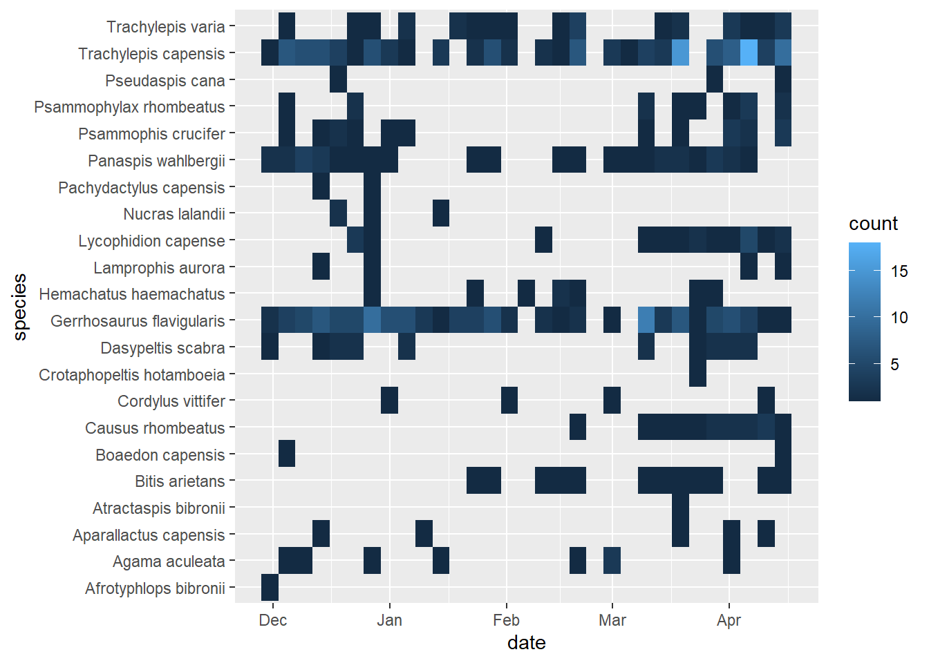 # heatmap of reptile captures through time