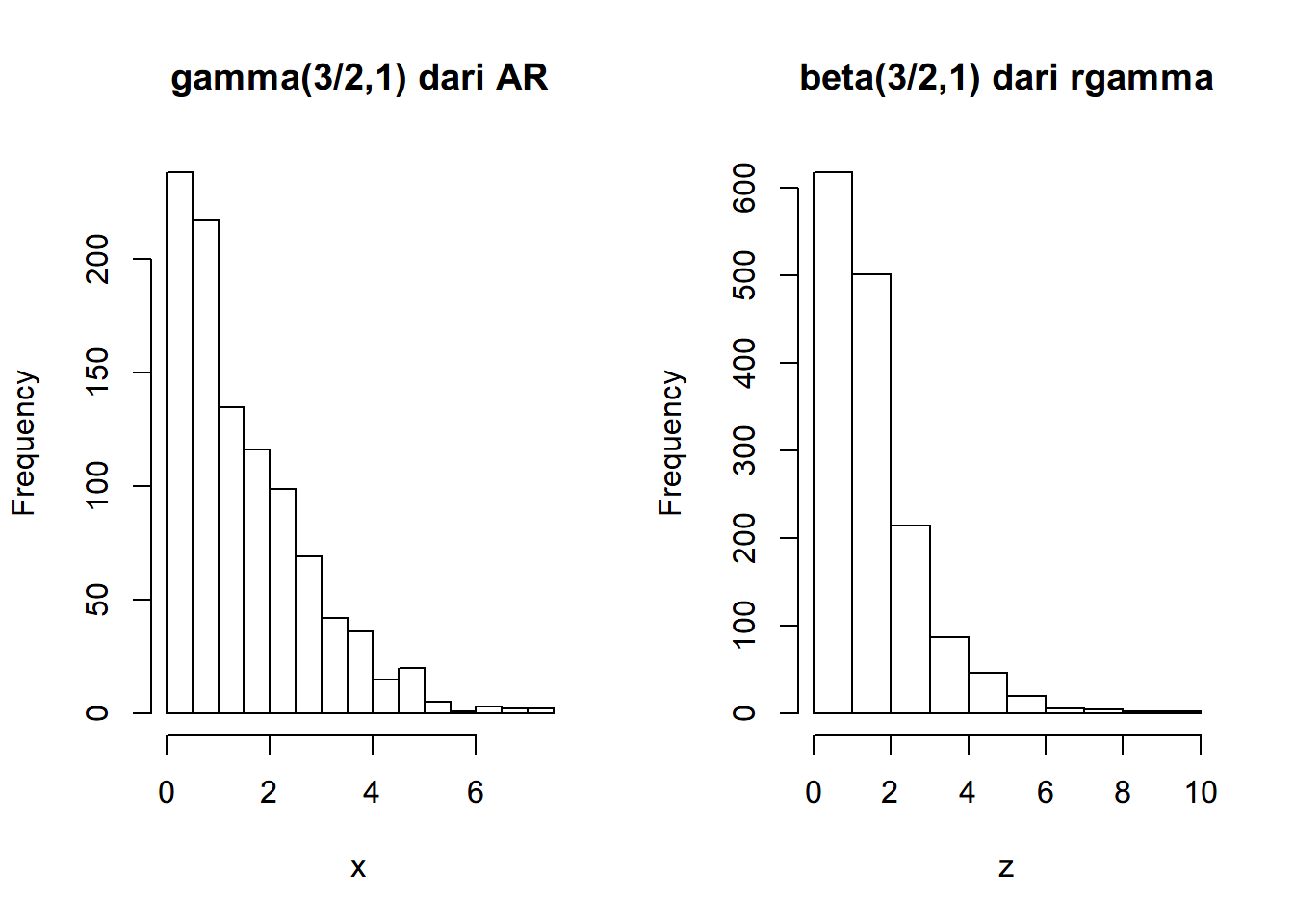 - Jika \(u\leq \frac{f(y)}{c g(y)}\), jadikan \(Y\) sebagai \(X\).
