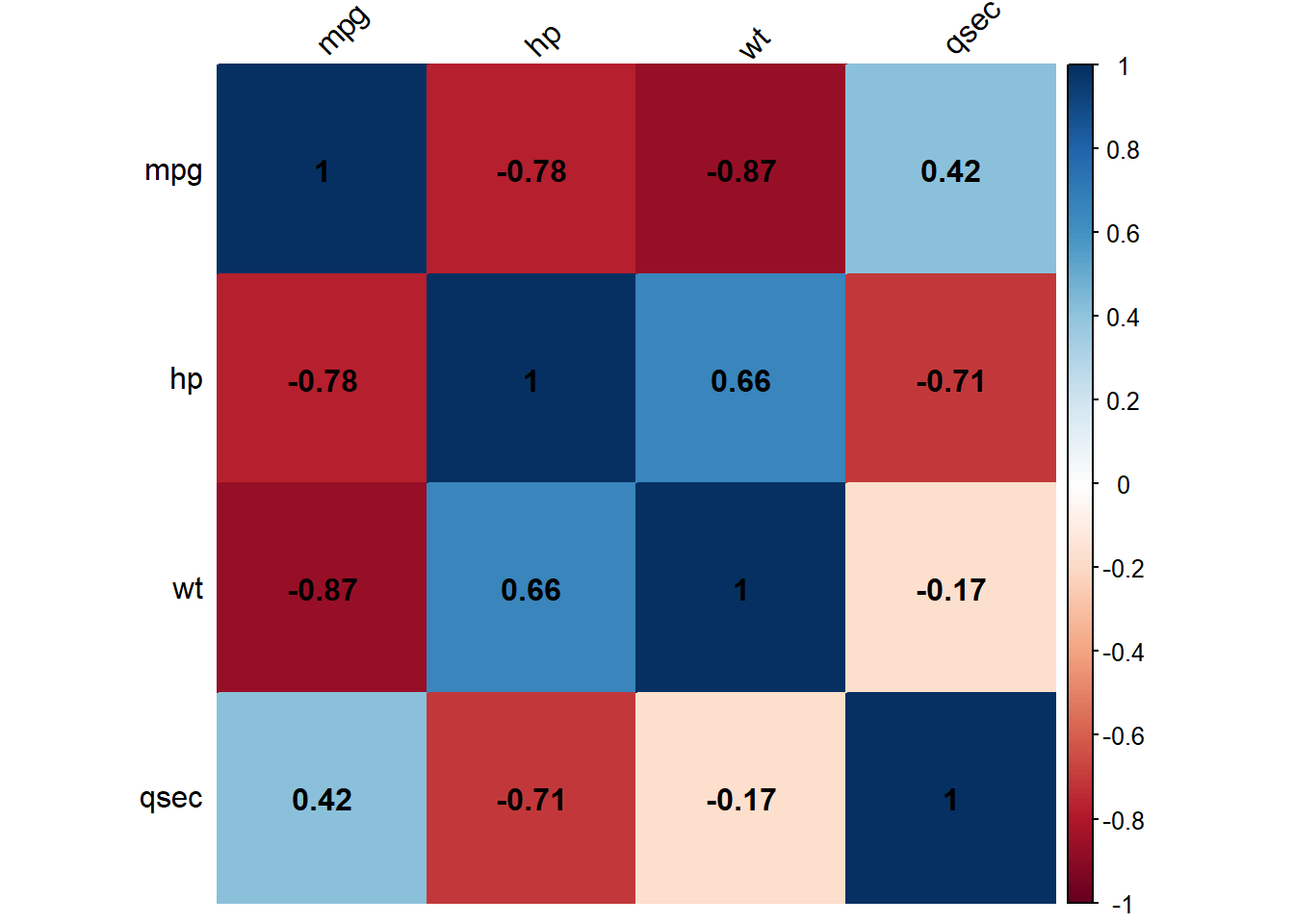 cor_matrix <- cor(mtcars[, c("mpg", "hp", "wt", "qsec")])