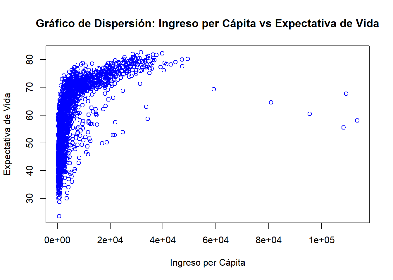 main = "Gráfico de Dispersión: Ingreso per Cápita vs Expectativa de Vida",