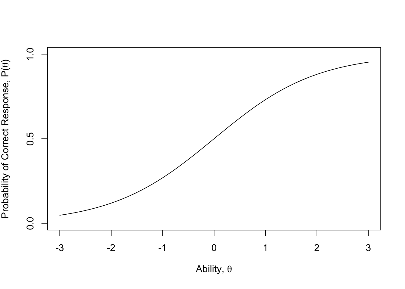 P <- 1 / (1 + exp(-amoderate * (theta - bmedium)))