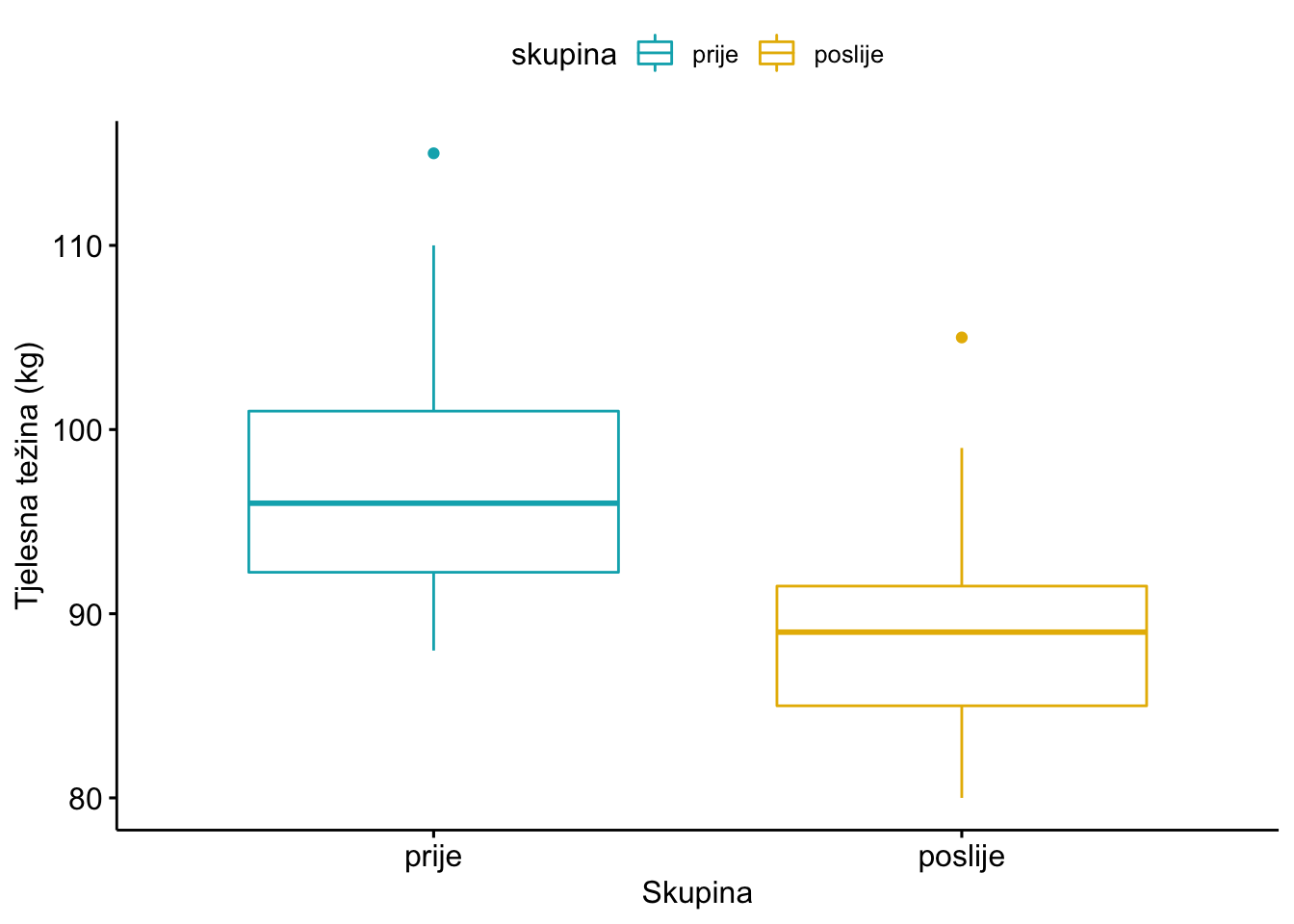 ylab = "Tjelesna težina (kg)", xlab = "Skupina")
