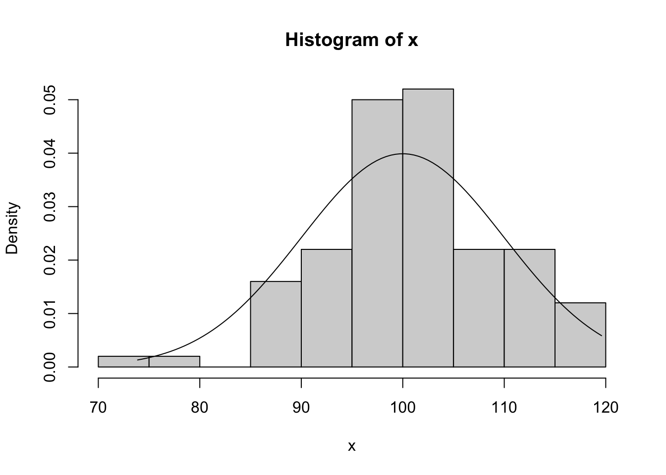lines(xy, dnorm(xy, mean=100, sd=10))