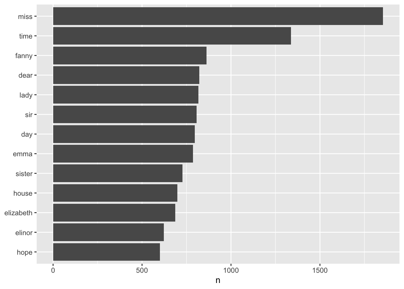 count(word, sort = TRUE)## # A tibble: 13,914 × 2
