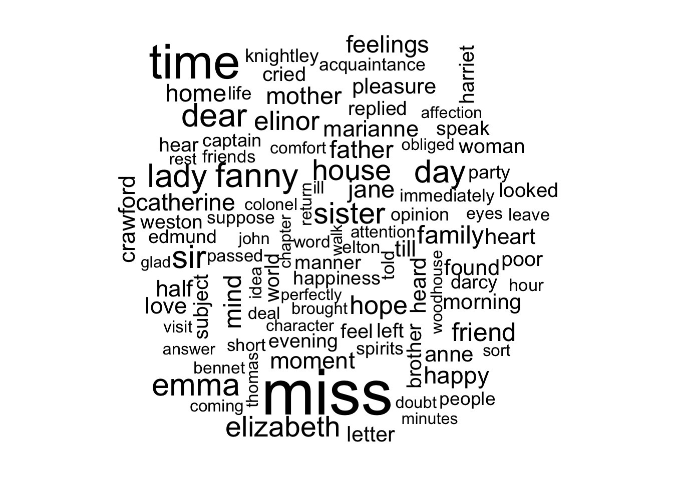with(wordcloud(word, n, max.words = 100)) #限定词云的最大数量为100## Joining, by = "word"