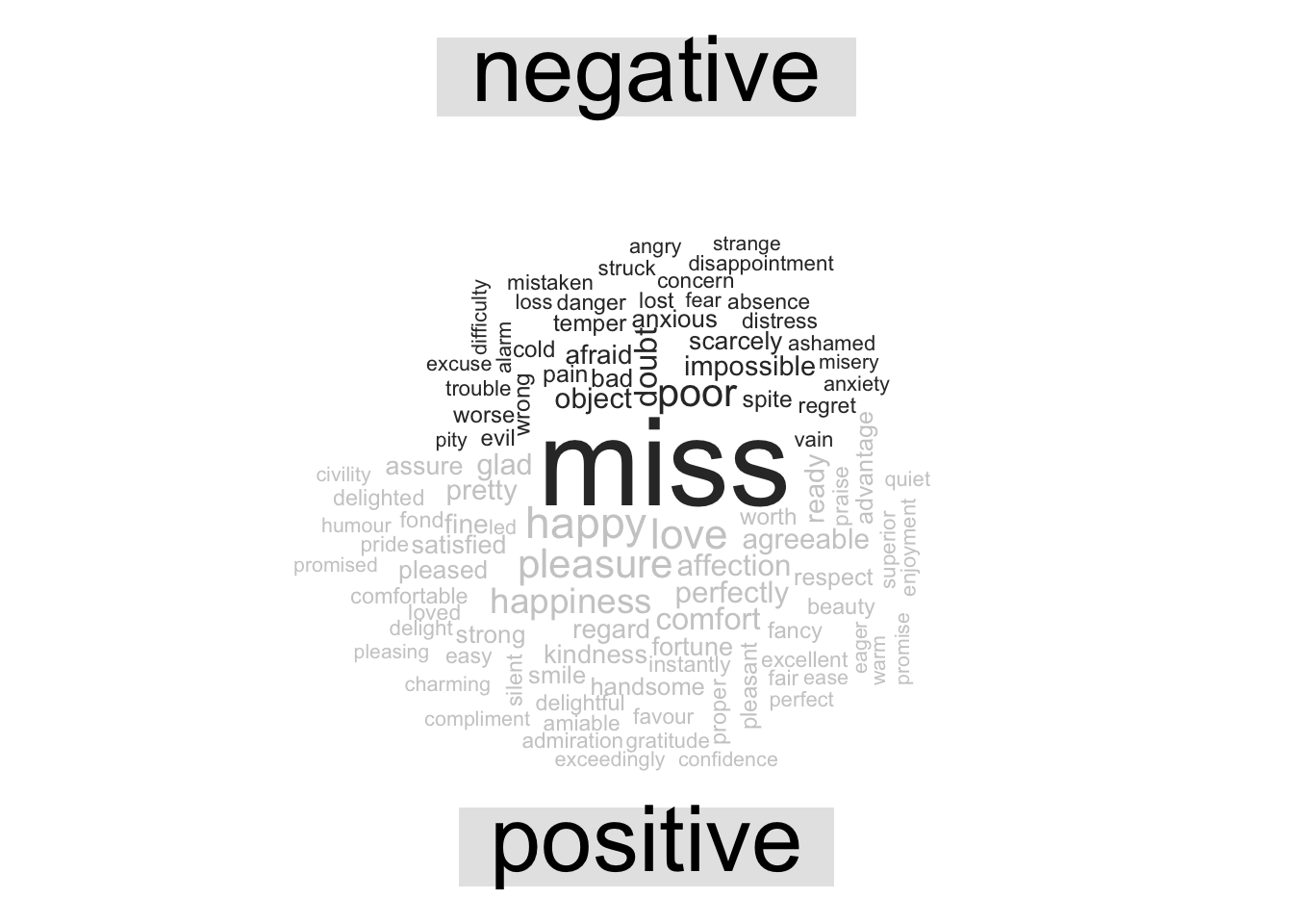 acast(word ~ sentiment, value.var = "n", fill = 0) %>%