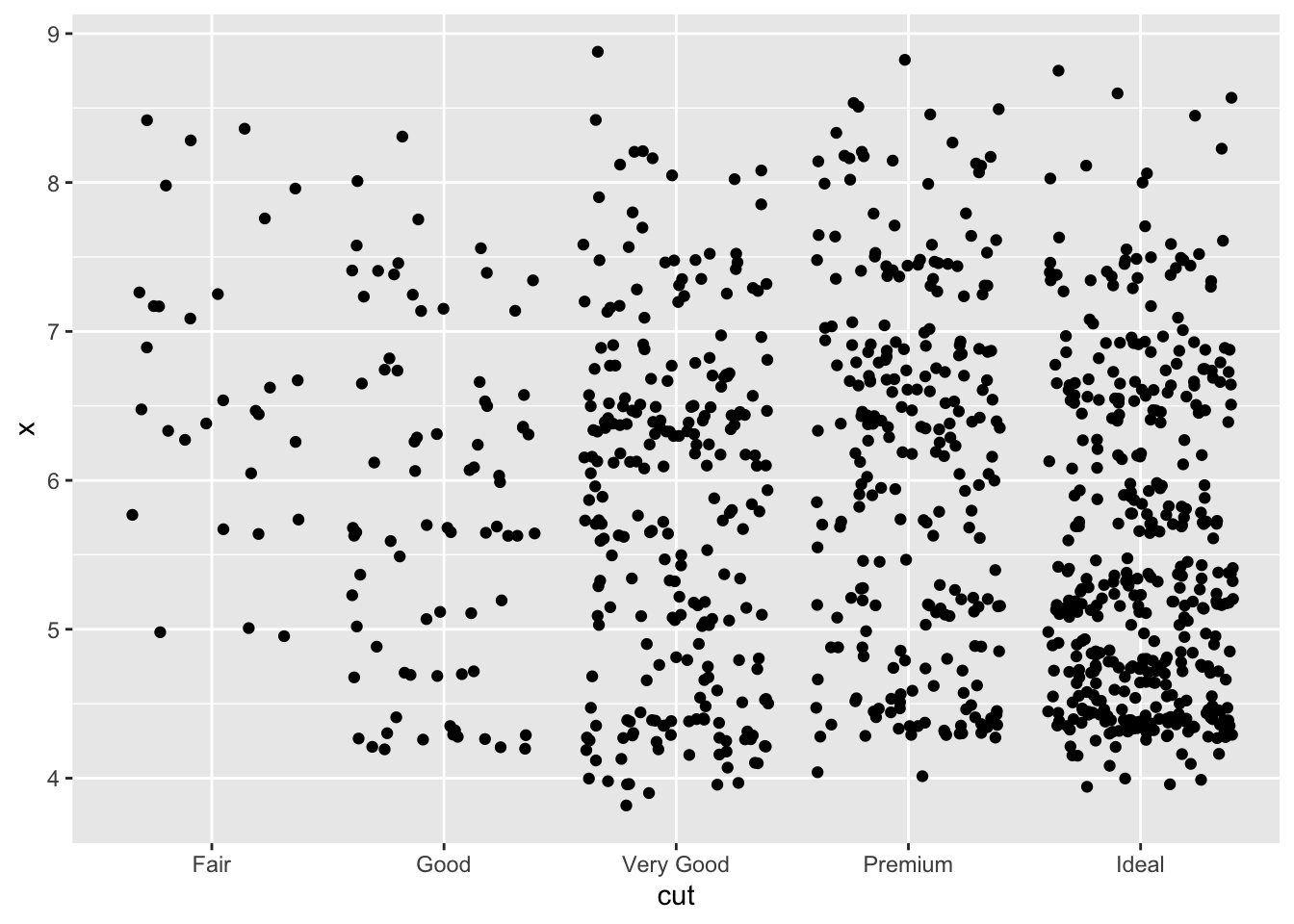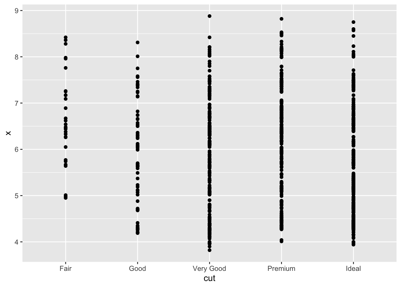 ggplot(data=dsmall,aes(x=cut,y=x))+