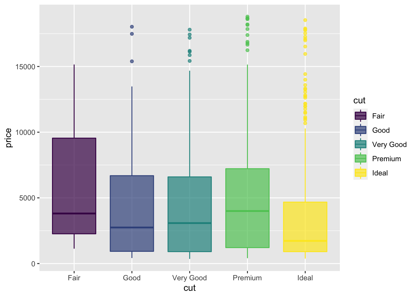 aes(x=cut,y=price,fill=cut))+