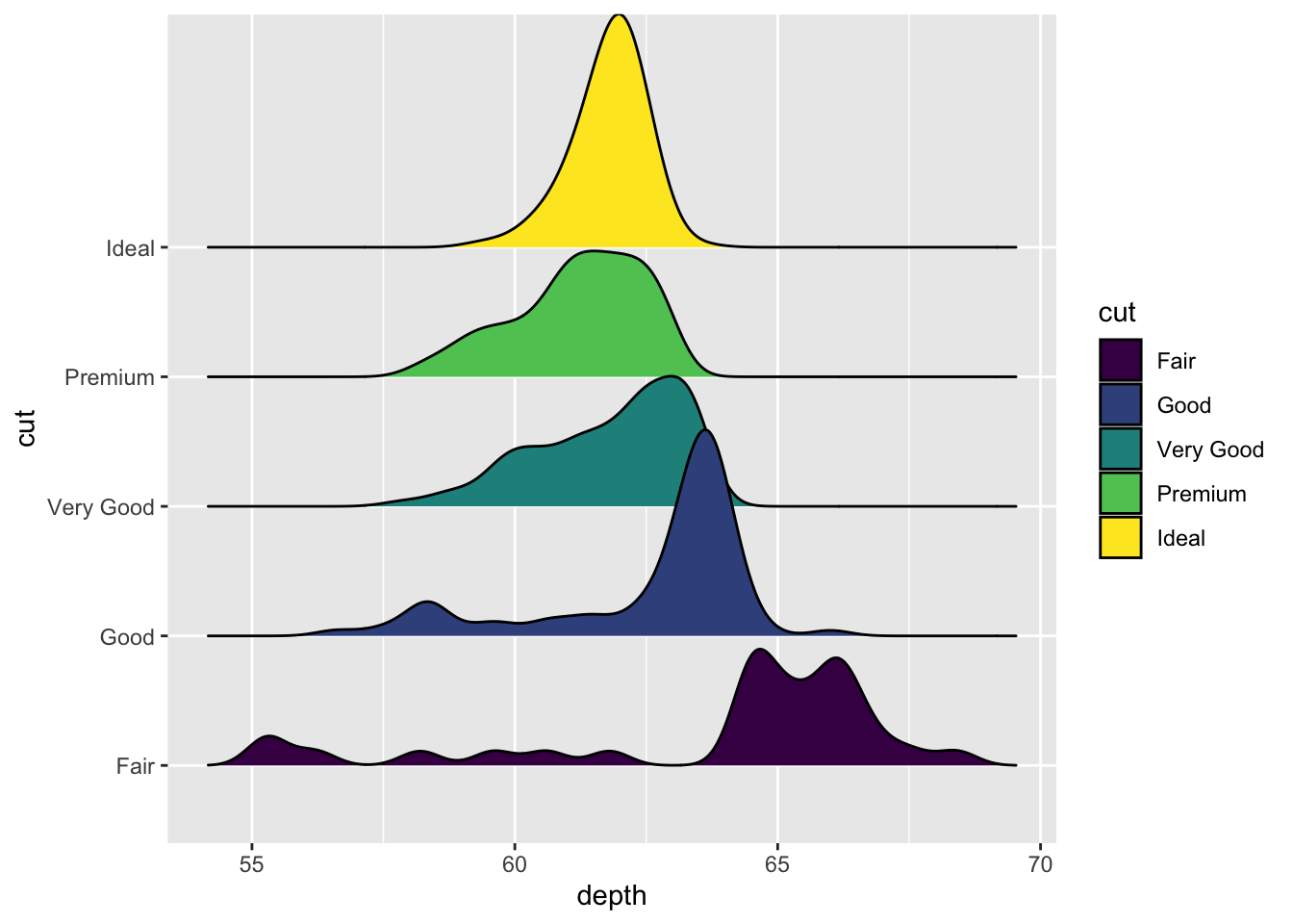 ggplot(aes(x = depth ,y = cut ,fill = cut)) +