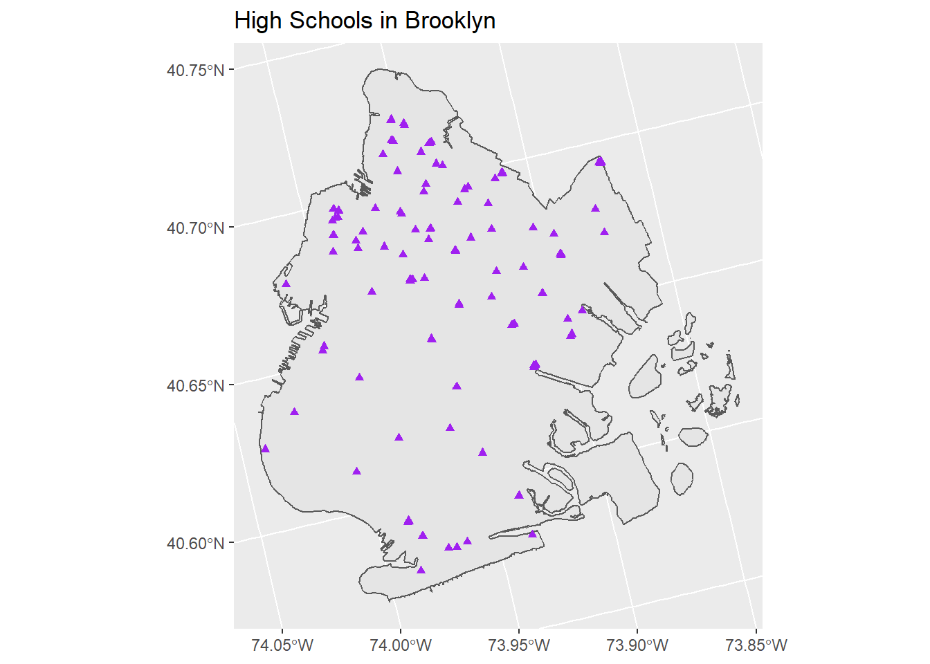 geom_sf(data = school_hs, shape = 17, color = "purple") +