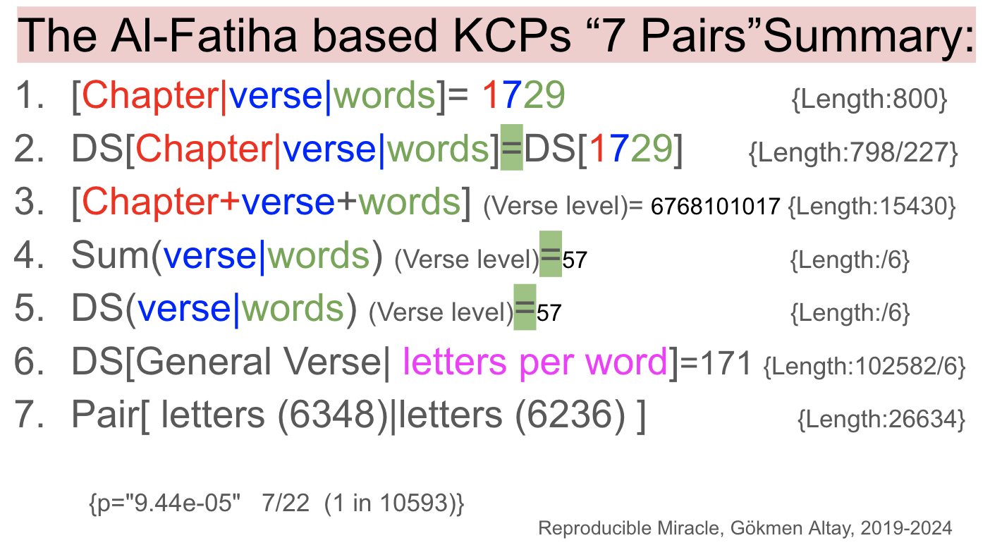 Lastly, for the reference, to the best of my knowledge, all the evidences of the Al-Fatiha based 19 system presented within this main chapter, Chapter 4.1.2, are first time presented to the literature in this book, and it has been hypothesized, tested and discovered by myself.