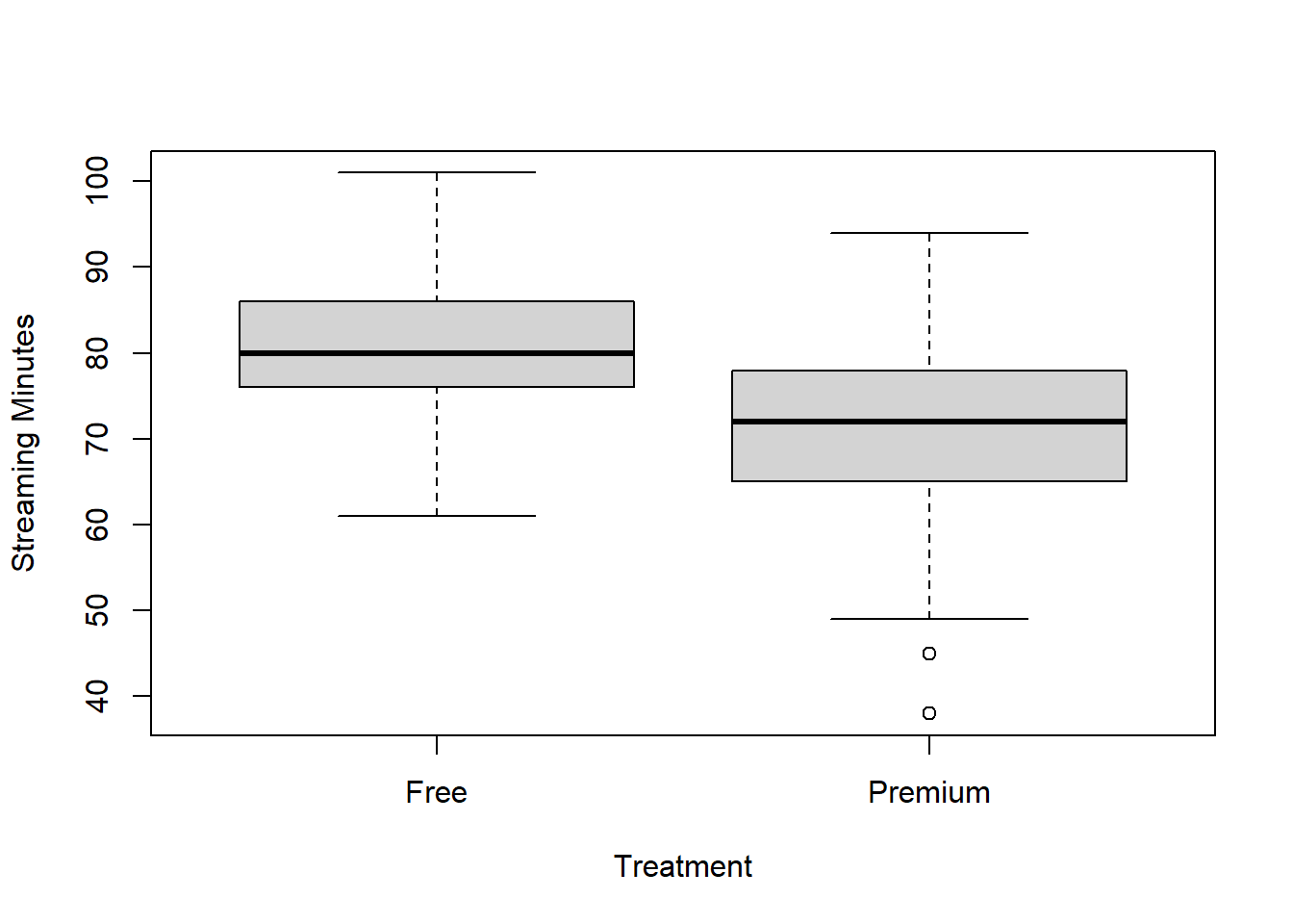 ylab = "Streaming Minutes", xlab = "Treatment")