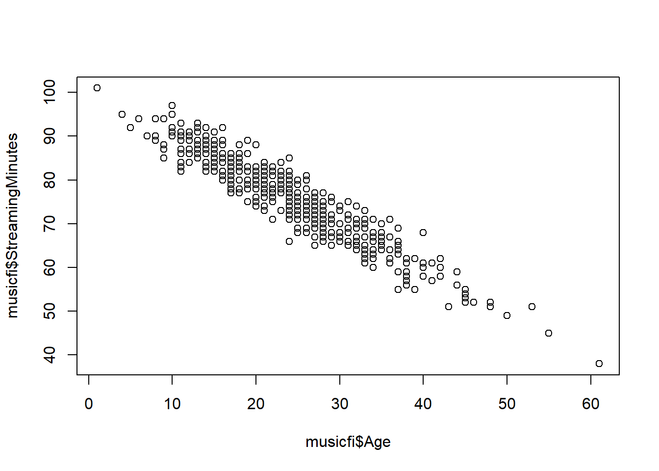 Suppose we have a random sample of 500 customers, stored in a data frame called musicfi: