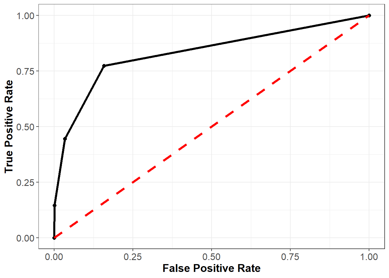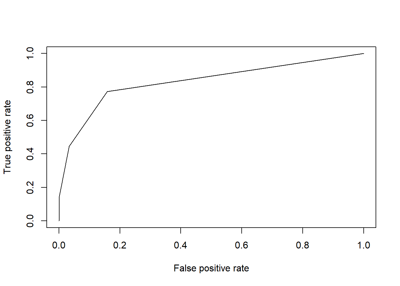 Below we apply these functions to create an object roc, which can be passed to the plot() function to plot the ROC curve: