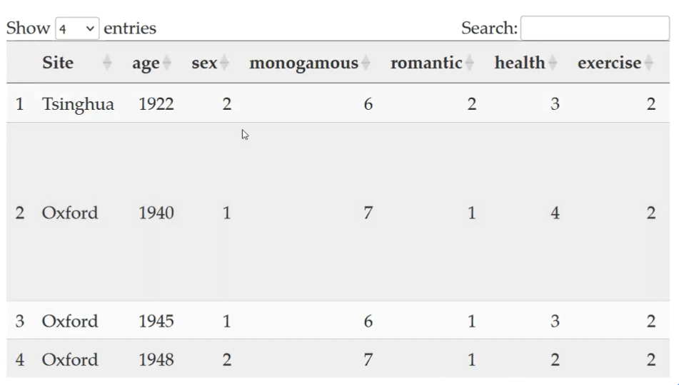 ## [1] "Site" "age" "sex" "monogamous" "romantic" "health"