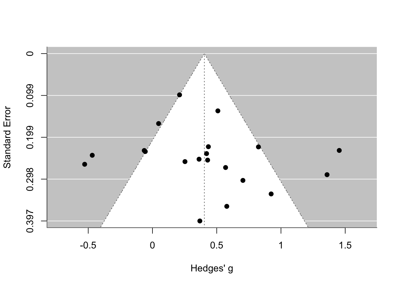 ## Test for Funnel Plot Asymmetry: t = 0.9106, df = 18, p = 0.3746