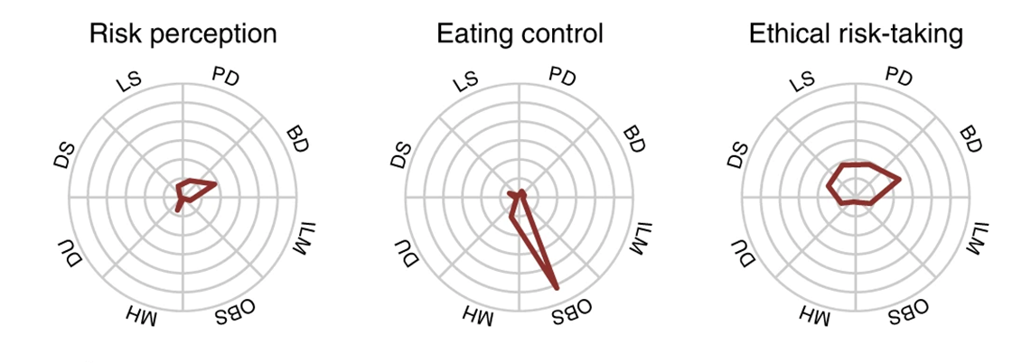 比如这里列举的实验(Eisenberg et al., 2019),去年的R课上我们以此作为了示例。它就是通过在线的平台收集的数据,收集到了很多变量。它的研究一个目的是为了探测self regulation,自我控制或自我调节,不同的测量方法是不是一致的,哪一个能更好地预测生活中的一些行为,比方说这里就是看哪一些与饮食控制有更强的相关。