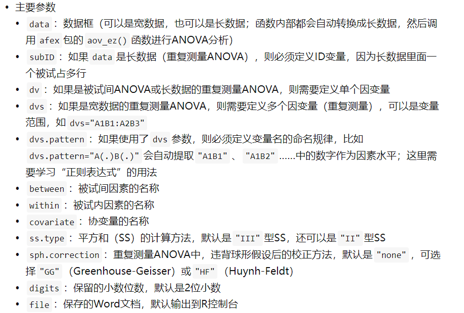 关于MANOVA函数的主要参数,我们不再详细讲解,大家可以查阅相关资料。该函数非常全面,而且有一个非常好的特点,就是它可以直接将结果保存为三线表格,方便我们将结果粘贴到Word文档中进行报告。