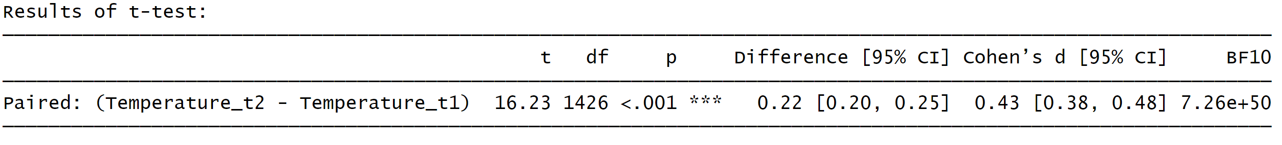 ## [5] "t = -0.347, df = 1425, p-value = 0.73"