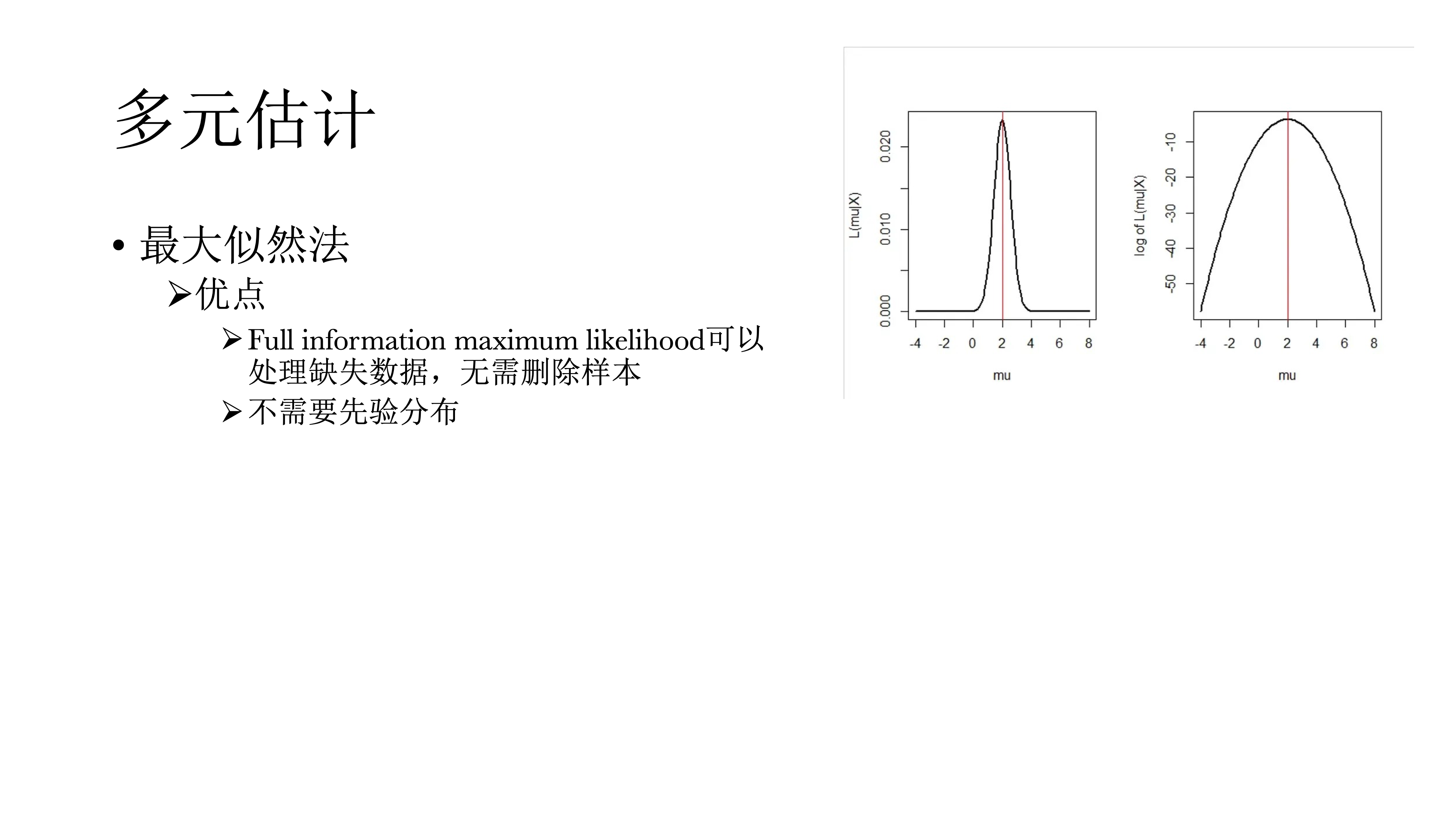 最大似然法的优势在于可以使用Full information maximum likelihood处理缺失值,而无需删除样本;还有一个是不需要先验分布,可以省去很多麻烦事情,也不会得到有偏估计。