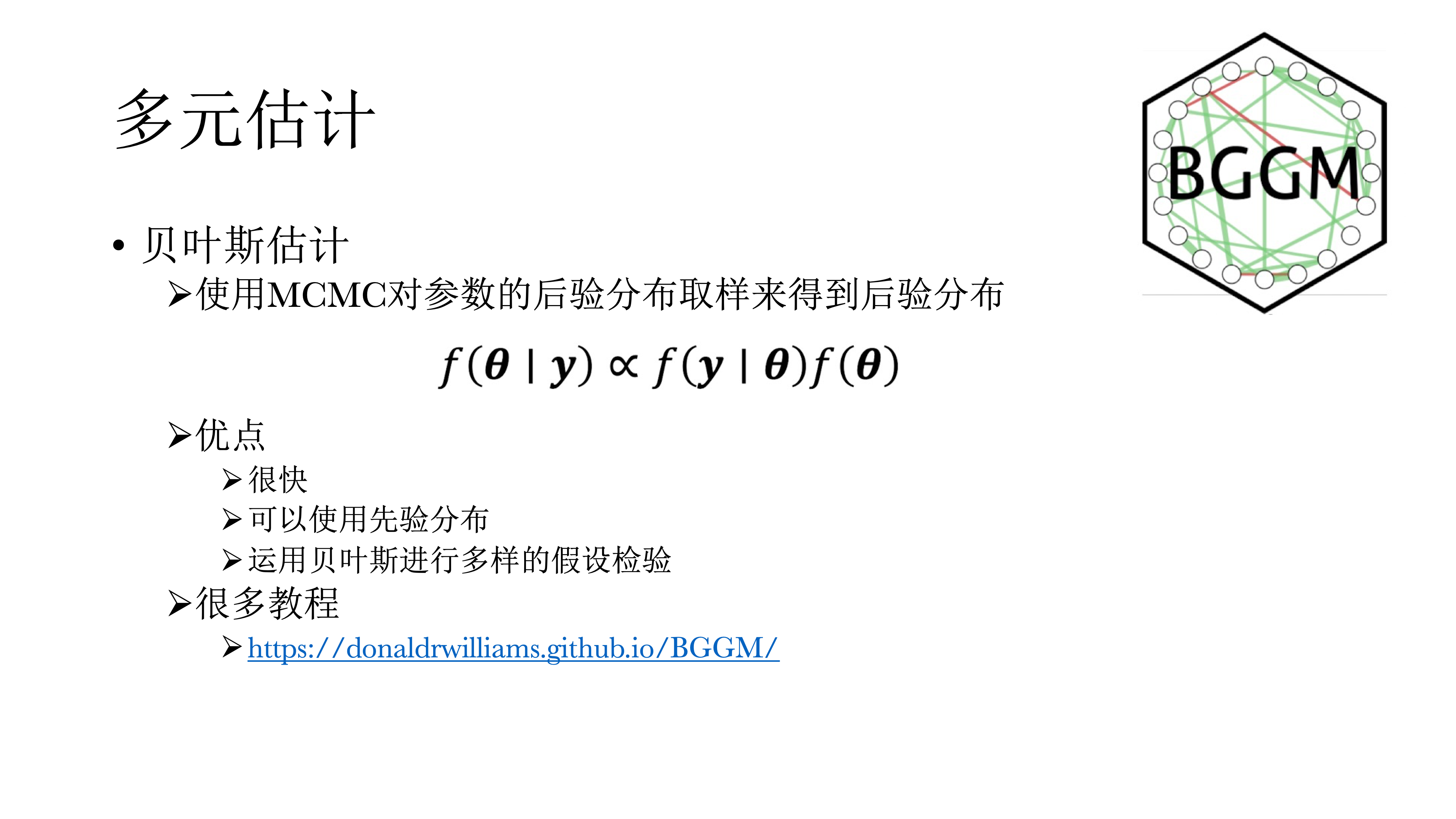 首先,会讨论基于潜变量模型的心理学研究。经过长时间发展,潜变量模型已经相对成熟,为什么我们还要使用一种新的模型——网络模型,他可以给我们带来什么新的视角和独特的思路?然后介绍基于网络的心理学理论,如何估计、选择网络模型,以及在R中如何将其实现。最后介绍在网络模型发展的情况下,潜变量模型的意义。