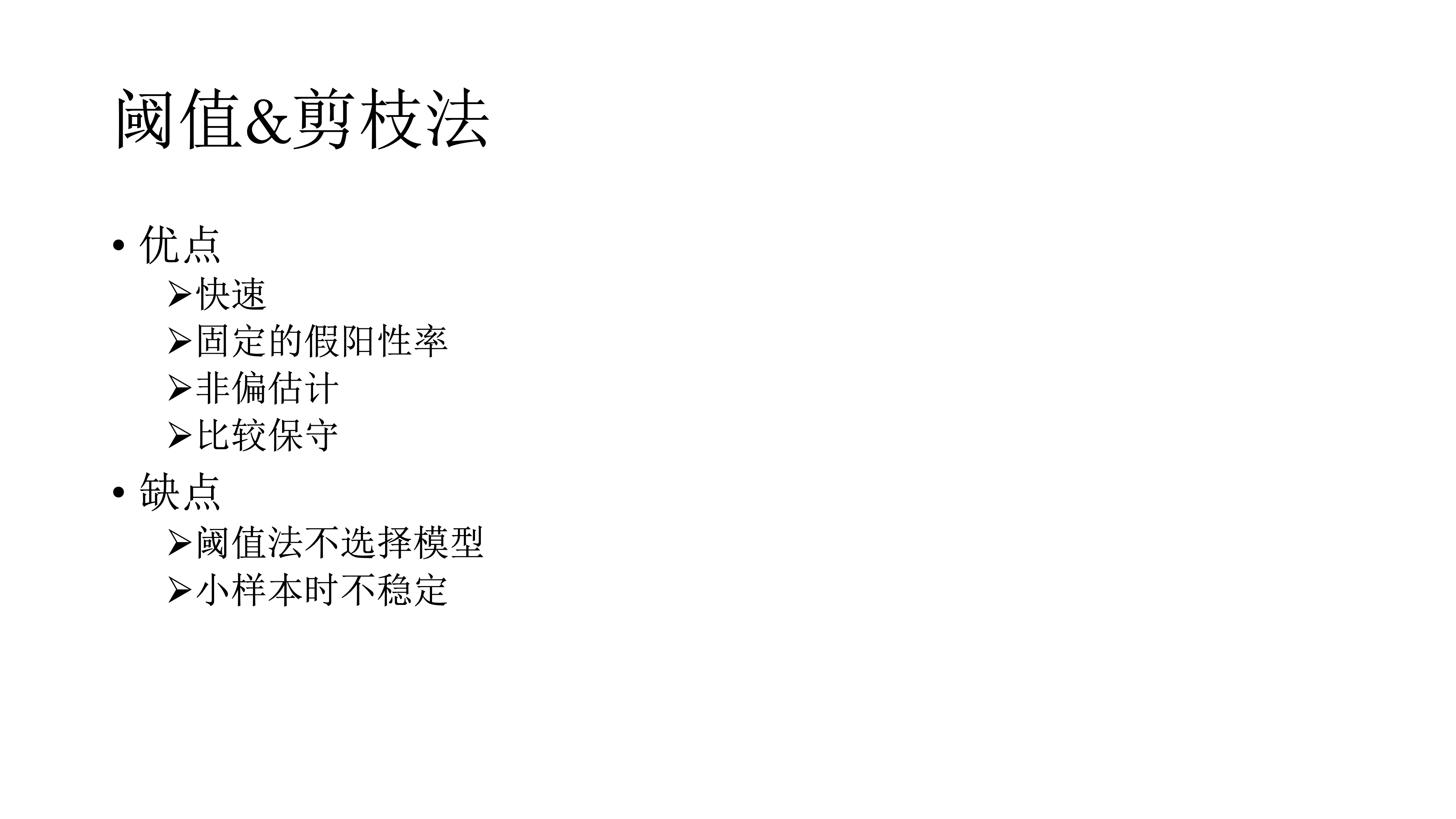 缺点在于:阈值法本身不是一种模型选择,只是把边给藏起来了;在小样本时不够精确。