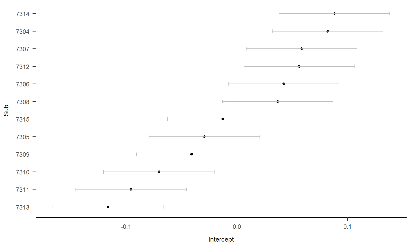 ggplot2::ggplot(., aes(x=Intercept, y=Sub)) +