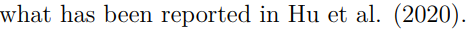 还有我们通常使用的另一种引用,即在句子中直接引用文章作者,此时只需要略去大括号即可,如@Hu_2020