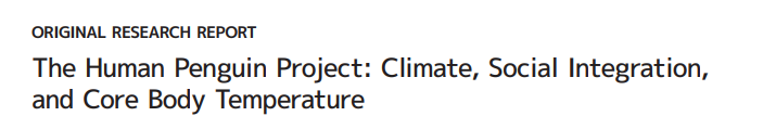 (参考文献:IJzerman, H., et al. (2018). The Human Penguin Project: Climate, Social Integration, and Core Body Temperature. Collabra: Psychology, 4(1): 37. DOI: https://doi.org/10.1525/collabra.165)