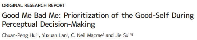 (参考文献:Hu, C.-P., et al. (2020). Good Me Bad Me: Prioritization of the Good-Self During Perceptual Decision-Making. Collabra: Psychology, 6(1): 20. DOI: https://doi.org/10.1525/collabra.301)