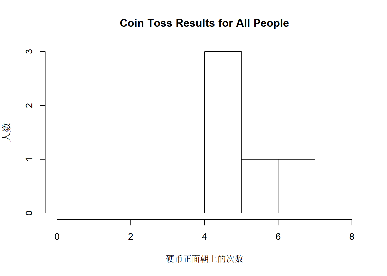 我们可以在R中来模拟一下抛硬币的实验。首先我们先写一个模拟抛硬币的函数。