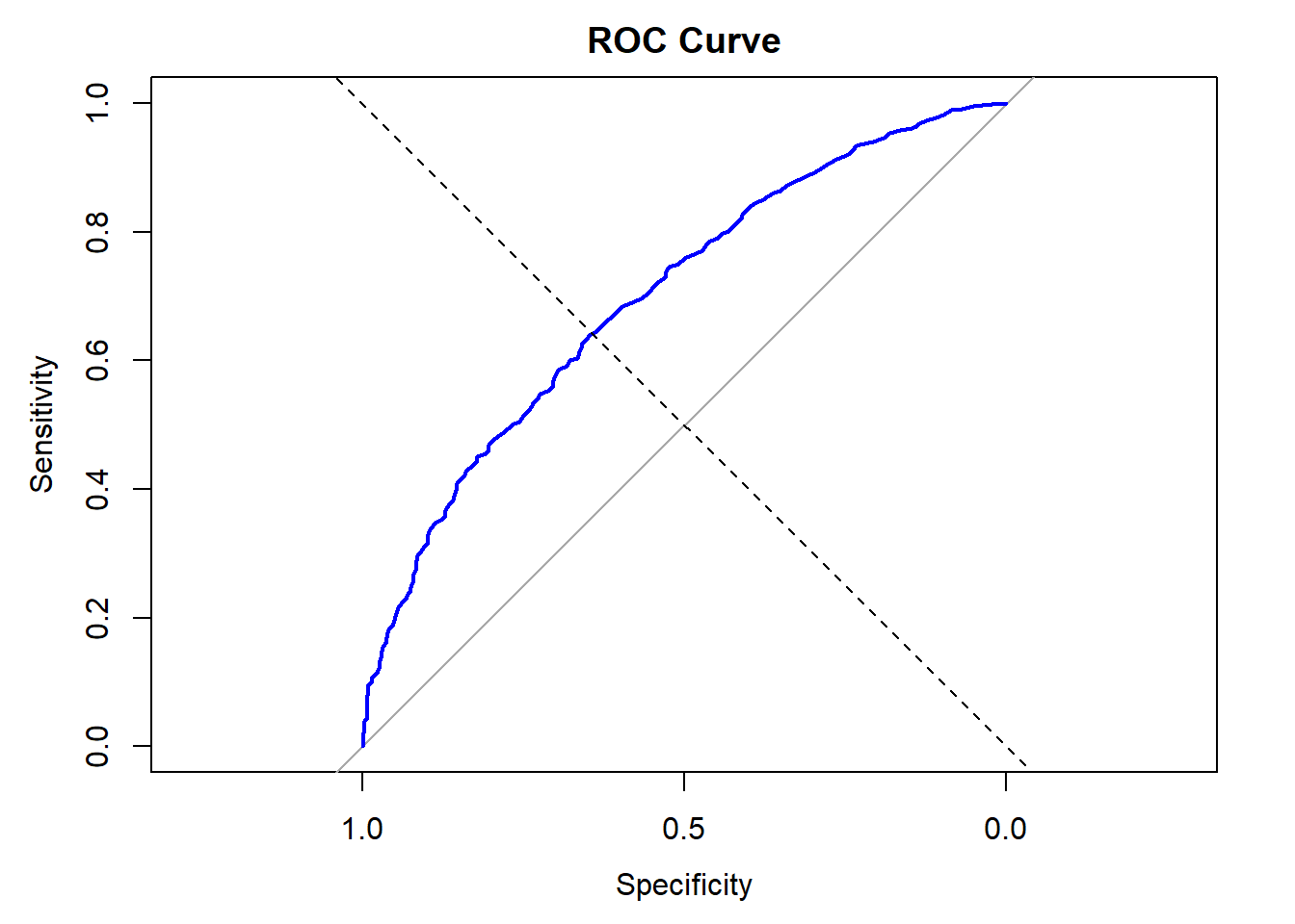 plot(roc_result, main = "ROC Curve", col = "blue", lwd = 2)