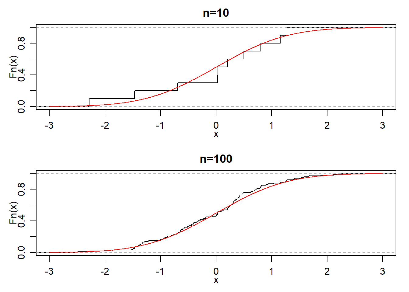 \[F_n(x)\to P(X\le x)=F(x),\] 即