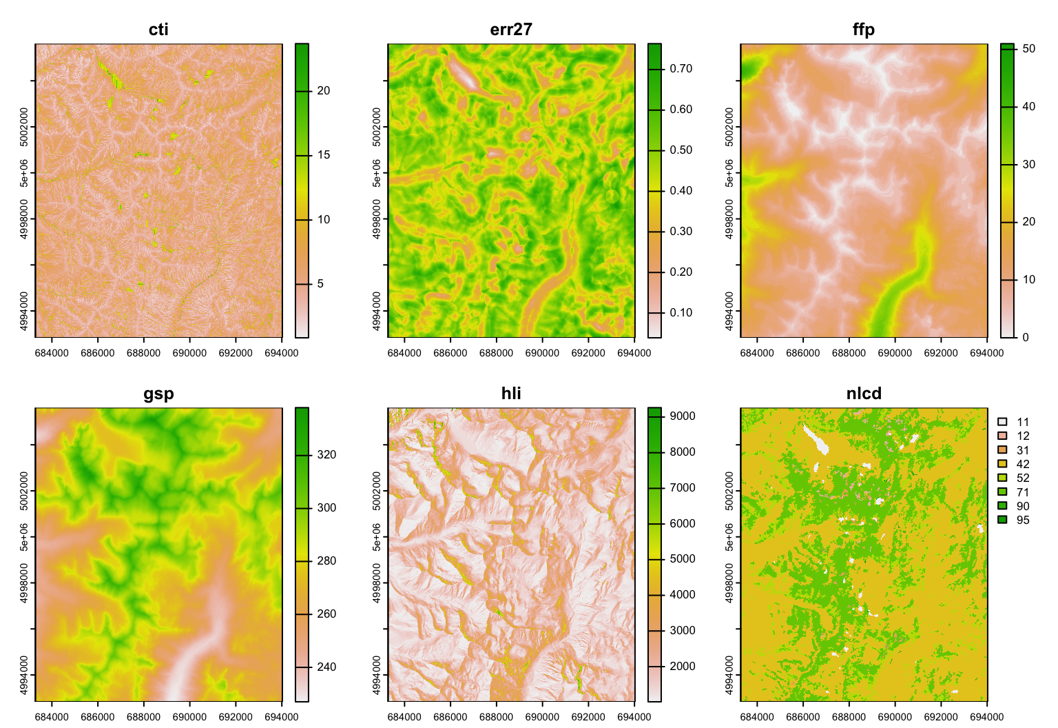 - nlcd: USGS Landcover (categorical map)