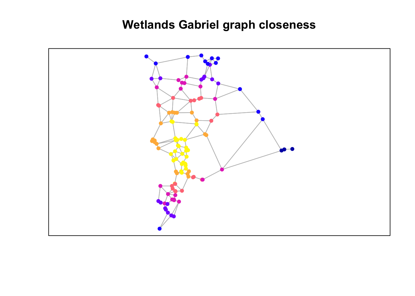Create Gabriel graph from the wetlands to represent a “realization” of connectivity and spatial arrangement.