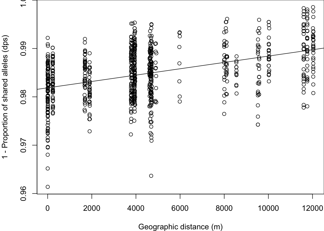 The package gstudio makes it very easy to import genotype data (see Week 1). Typically, we store our genotype data in a spreadsheet with one line per individual and two columns per locus. Using the read_population function, we tell gstudio which columns contain our loci. The argument type="column" indicates that our raw text file stores genotypes in two columns per locus.