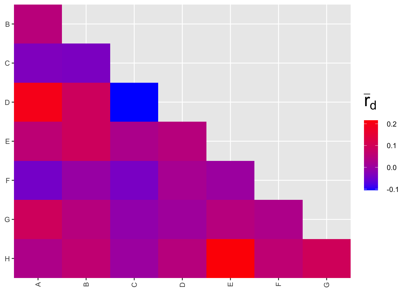 - Expected heterozygosity varies between 0.14 (locus C) and 0.78 (locus E)