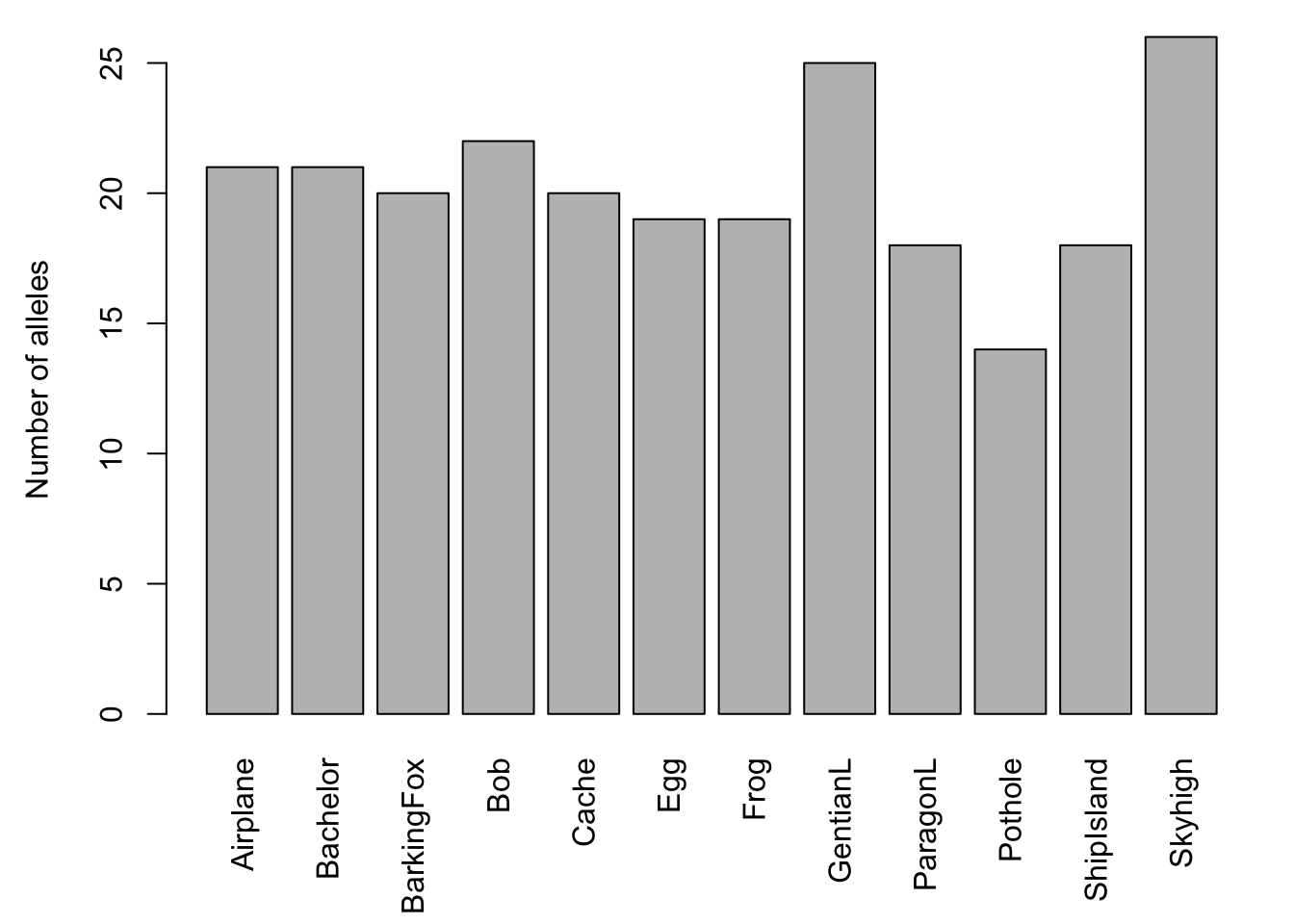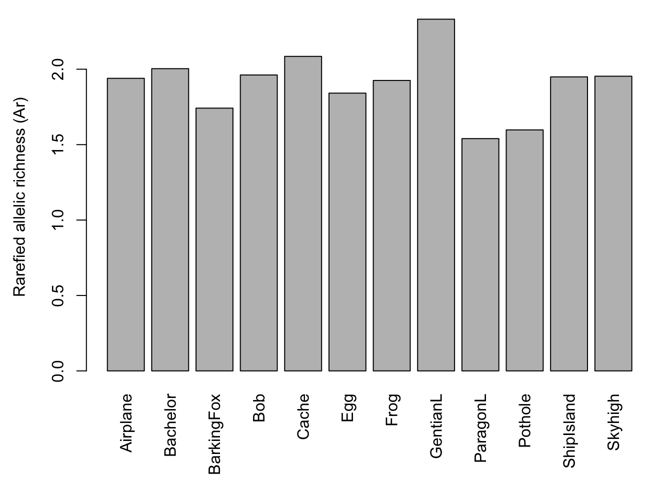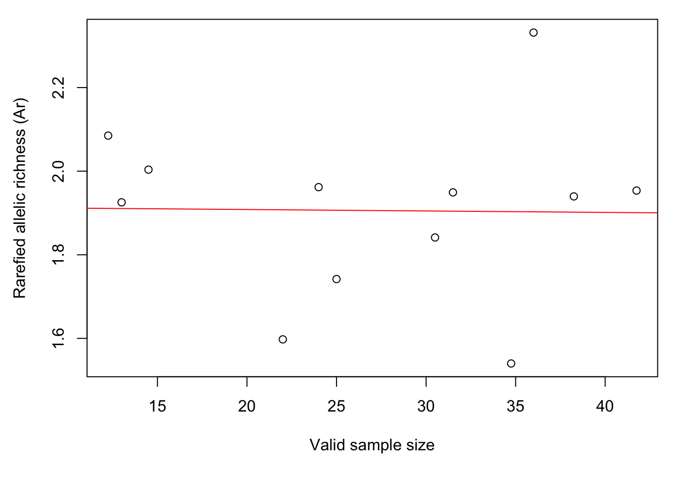 Hence we should not compare the number of alleles directly. Instead, we’ll use rarefied allelic richness (Ar).