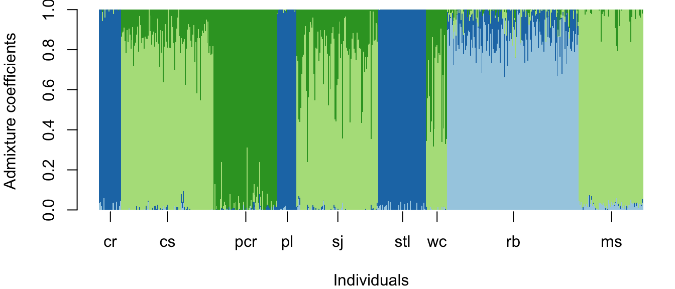 ## Write individual ancestry coefficient file /Library/Frameworks/R.framework/Versions/4.3-x86_64/Resources/library/LandGenCourseData/extdata/stickleback.snmf/K4/run1/stickleback_r1.4.Q: OK.