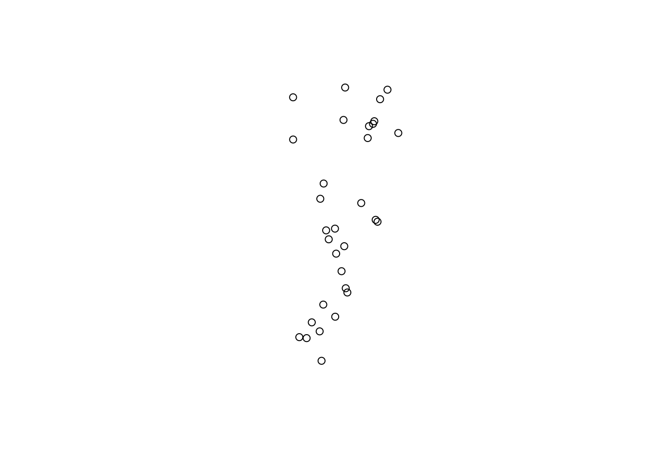 The following code may produce a warning that column names were abbreviated. It writes the component files for the ESRI shapefile into the pre-existing folder output (the first line will create it if does not exist yet). Remember to remove the hashtags ‘#’ to un-comment the code before running it.