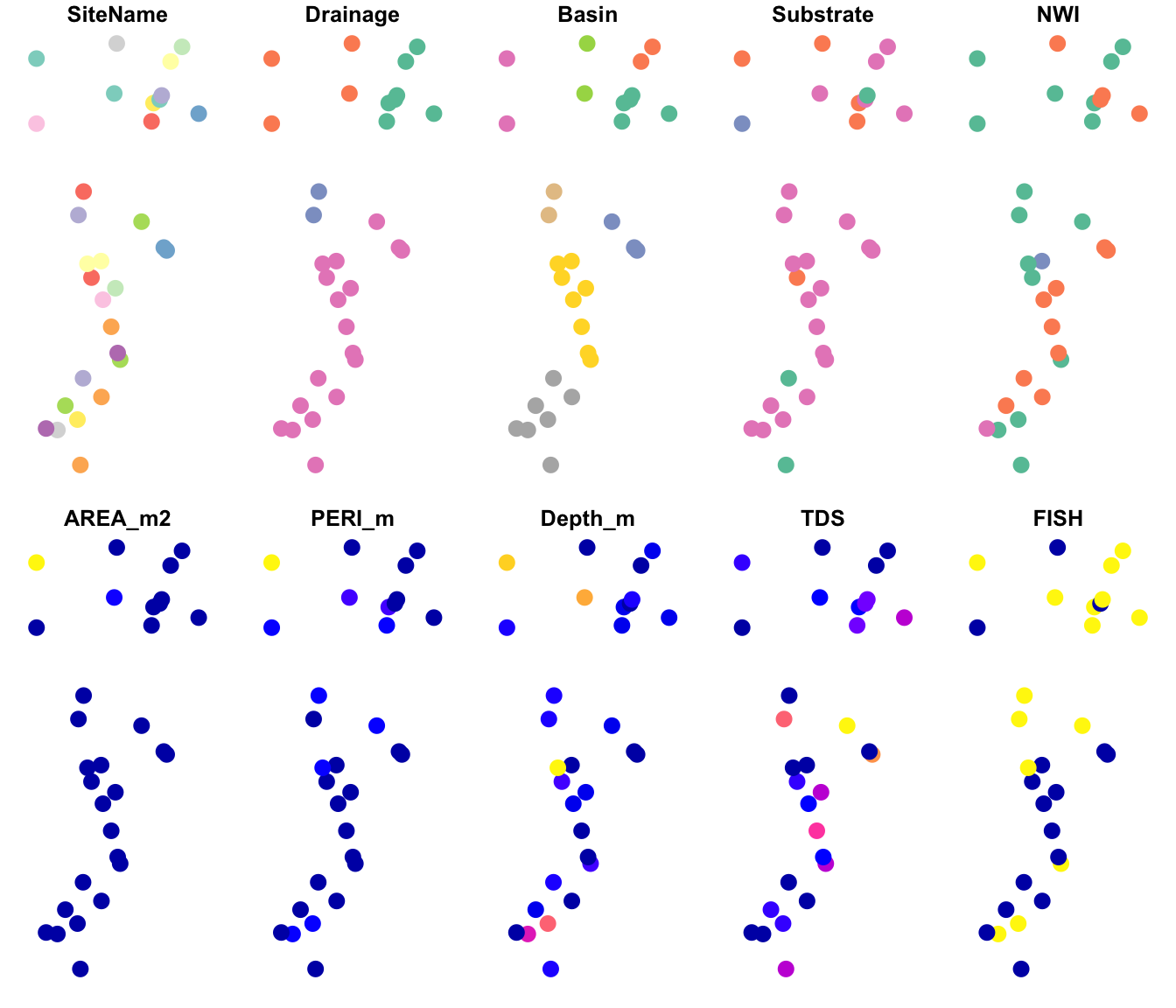 ## names : SiteName, Drainage, Basin, Substrate, NWI, AREA_m2, PERI_m, Depth_m, TDS, FISH, ACB, AUC, AUCV, AUCC, AUF, ...