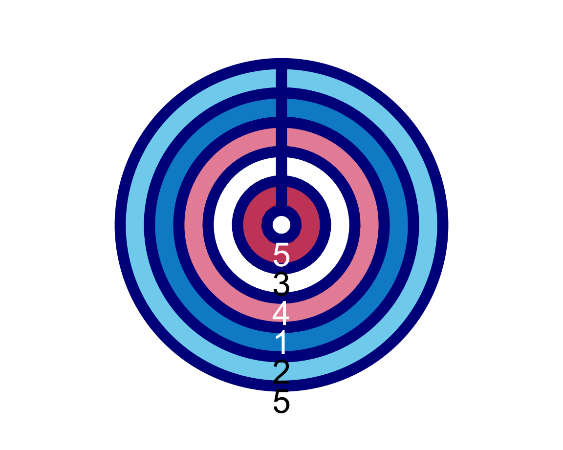 Again, our hunches are confirmed (or — for the logical positivists among us — not rejected yet). Before we decipher the meaning of the remaining arguments, let’s double check what we know so far by creating a plot with five elements that are arranged in a column and plotted in a circular fashion, with lines of width 4 in a “darkblue” color: