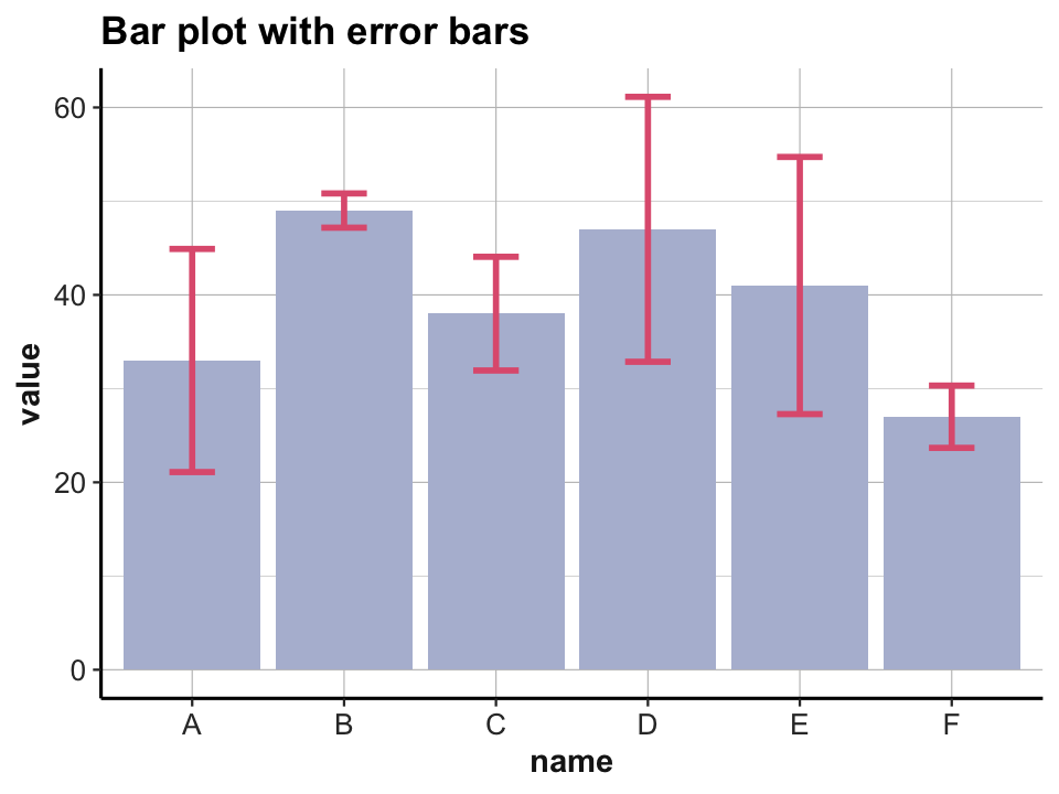 geom_errorbar(aes(x = name, ymin = value - sd, ymax = value + sd),