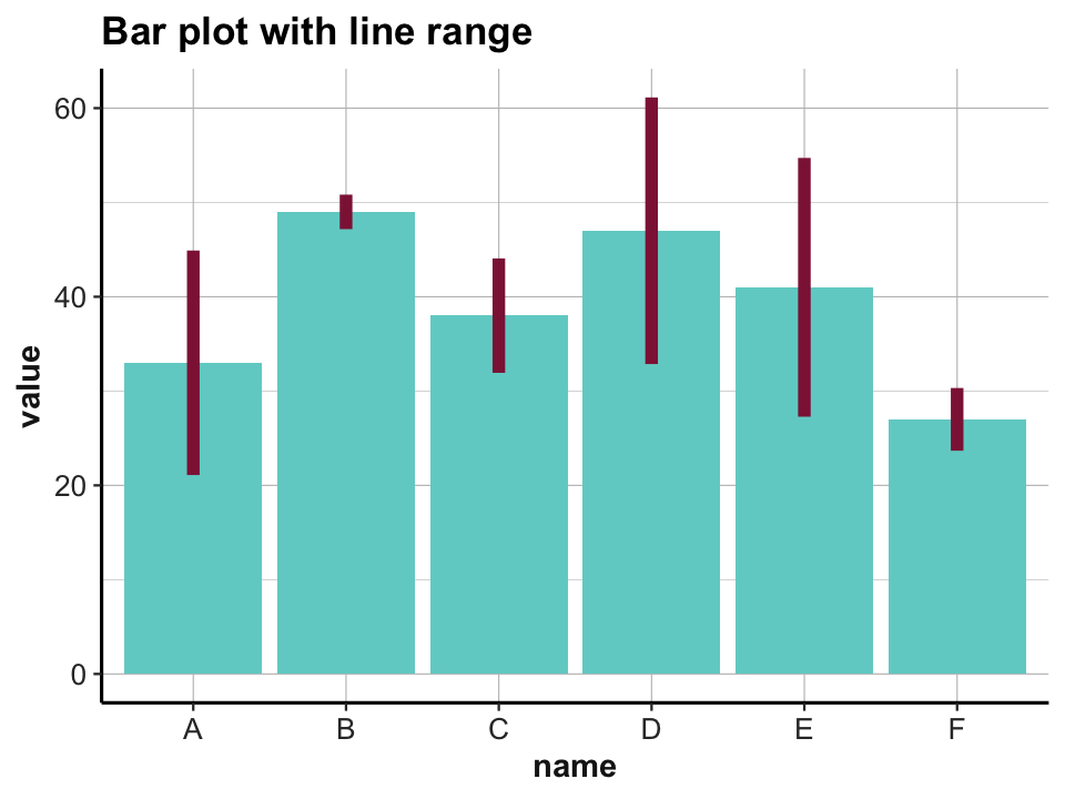 geom_linerange(aes(x = name, ymin = value - sd, ymax = value + sd),