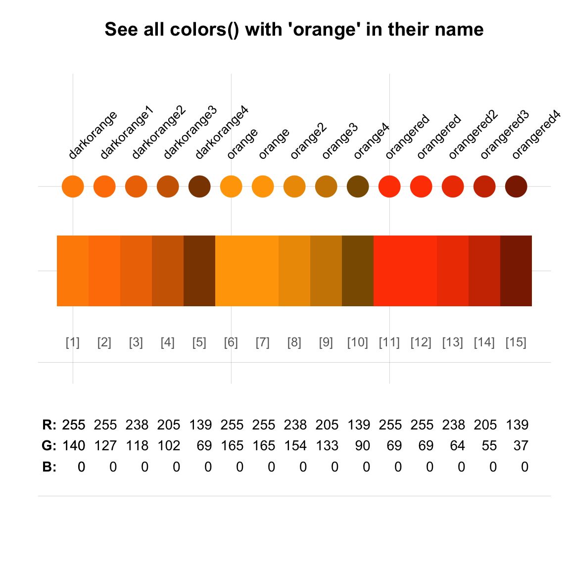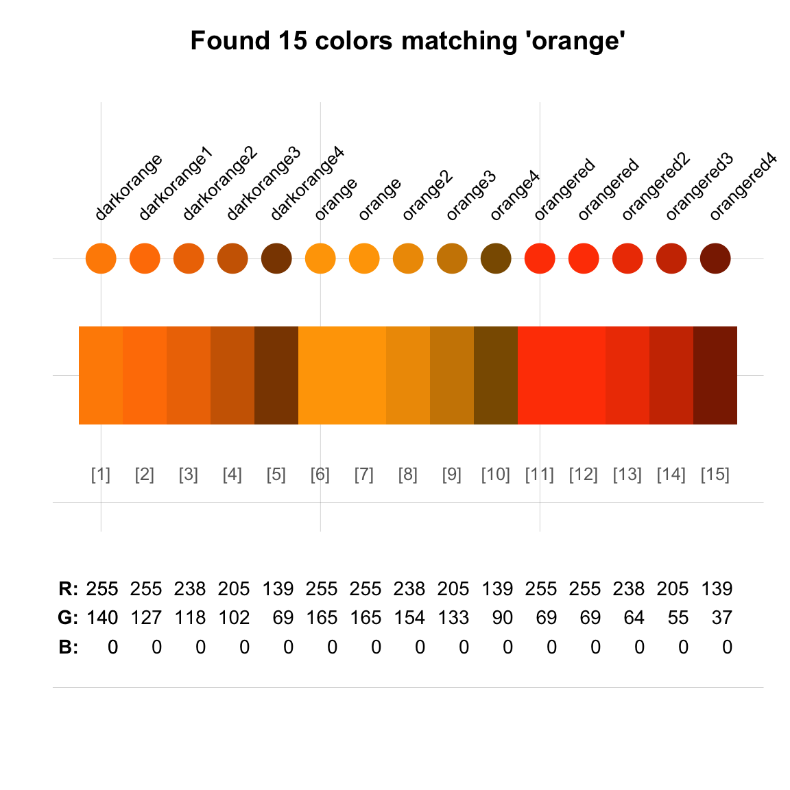 #> [1] "darkorange" "darkorange1" "darkorange2" "darkorange3" "darkorange4"