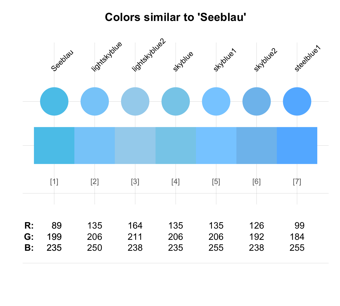 #> Seeblau lightskyblue lightskyblue2 skyblue skyblue1