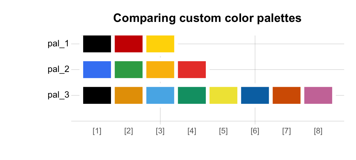 In the graph above, we can see that the color palette my_cols could have been defined in the following ways: