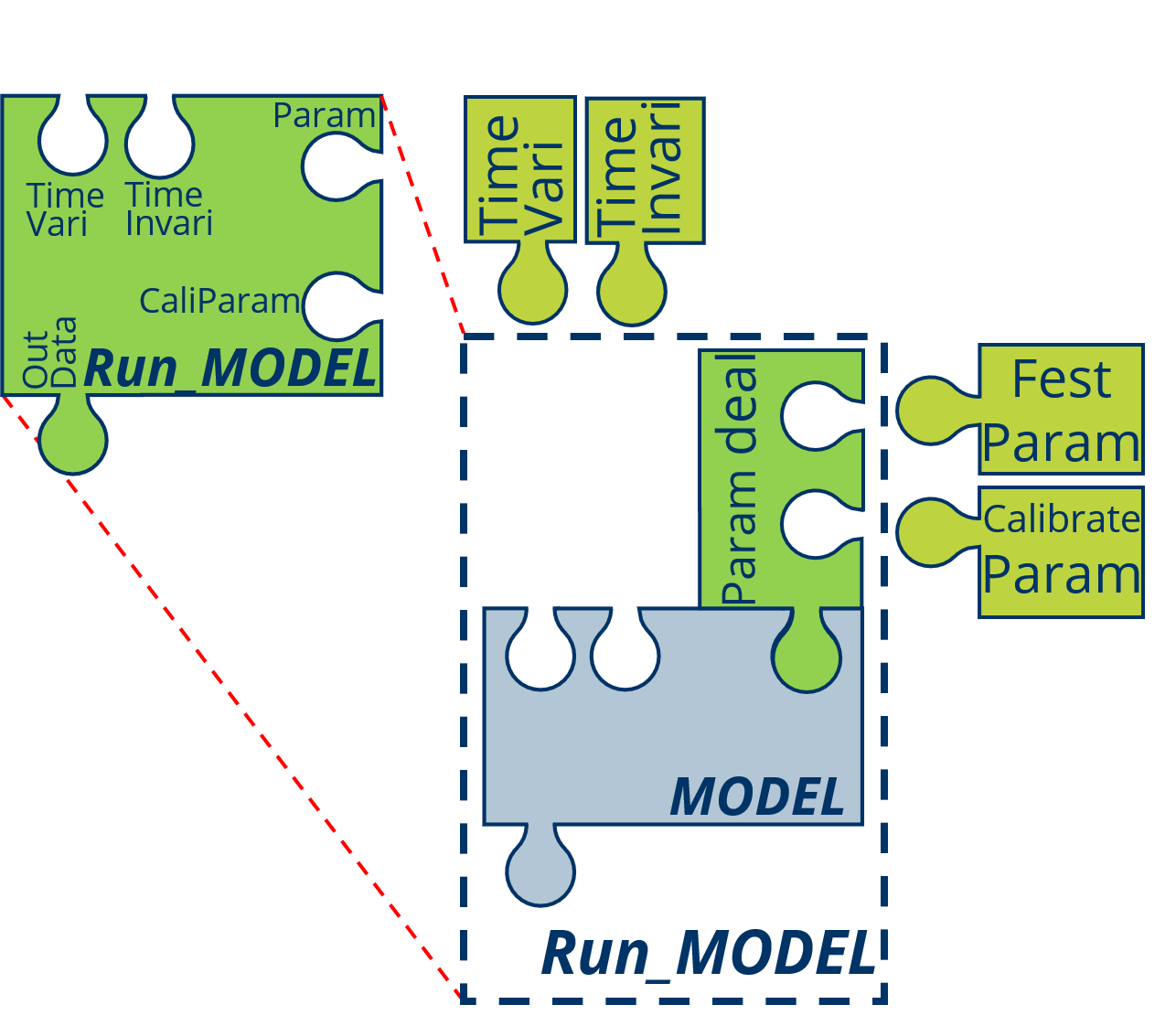 The using of a MODEL is the basic, but the Param (parameters) import base on the name-index not number-index, so it’s essencially to make a Run_MODELL to transfer the parameters, especially when use auto calibration program. In a Run_MODELL function you can set the parameters those need to calibrate or not.