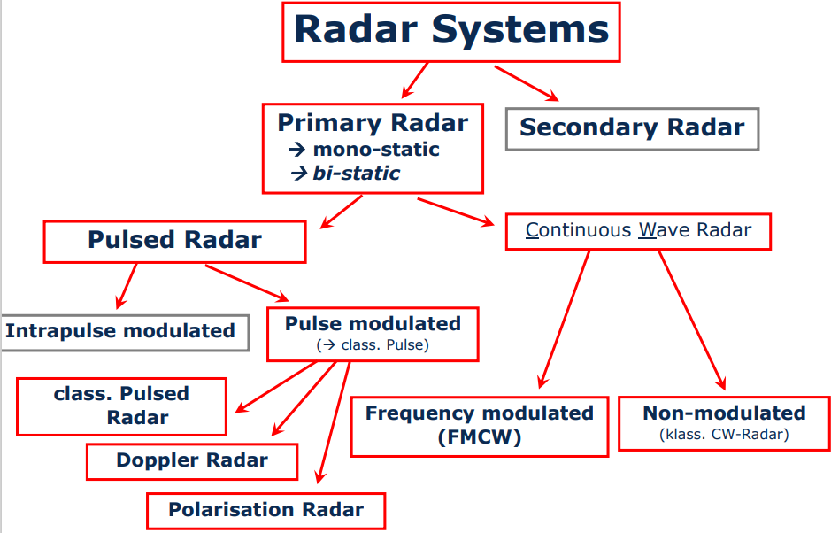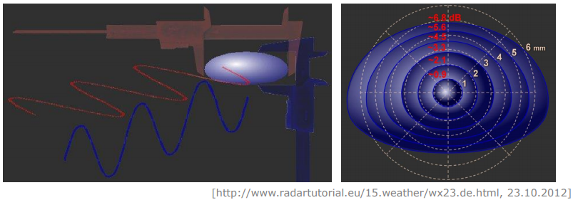 Propagation of radation in small and long angles (Radar-Beam) with light speed \(\rightarrow\) Pulse reaches an obstacle \(\rightarrow\) Reflection (exactly Scattering)